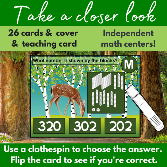 Math task cards for 2nd grade | word form and picture form for 3 digit numbers