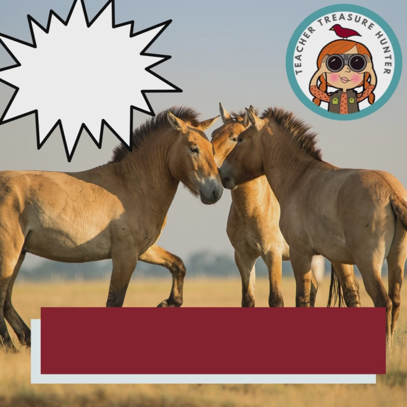 This nonfiction information page is full of facts about Przewalski's horse, an endangered animal that is found in small areas of China and Mongolia. Przewalski's horse was considered extinct in the wild not too long ago. The population has started recovering and been upgraded to critically endangered and more recently upgraded to endangered. This informational page about Przewalski's horse is great for learning about endangered animals. It has all the information that students need for an animal report. No prep! Just print and go!